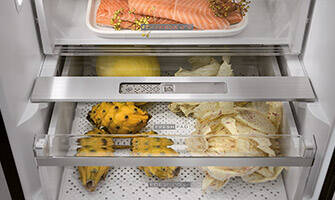 6TH SENSE- teknologin kontrollerar temperatur och luftfuktighet, samt återställer till en idealisk nivå om dörren stått öppen - allt för att bevara kvaliteten hos din kylda och frysta mat.